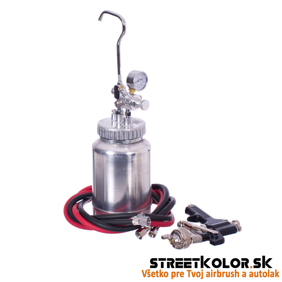 Striekacie zariadenie KolorTech PX-2 je vysokotlakový striekací systém, ktorý obsahuje nádrž s väčším objemom, regulátor tlaku s manometrom a poistným ventilom. Veľká skladovacia kapacita umožňuje striekanie veľkých plôch a objektov. Dôležitou výhodou je to, že pracujete iba so striekacou pištoľou bez zbytočnej záťaže v podobe nádržky namontovanej priamo na pištoli. Farba sa privádza priamo z veľkého zásobníka prostredníctvom dodanej 2m hadice. Na striekacej pištoli je možné nastaviteľné ovládanie prietoku vzduchu a upravenie množstva prietoku farby. Sada obsahuje regulátor. Rýchle striekanie, vysoký efekt! Pištoľ je navrhnutá tak, že ju môžete použiť na striekanie všetkých typov povrchov. Pištoľ sa skvele hodí pre striekanie veľkých dielov a veľkých objektov. Je ideálna pre prácu s farbami na vodnej báze, akrylovými, metalickými, perleťovými farbami ako aj akrylovými náterovými hmotami.